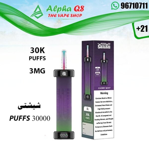 شيشتي 30K شيرى مينت 3 نيكوتين. هوا الاصدار الجديد من براند شيشتي. منتجات شيشتى مع امكانيه التحكم ايرفلو و شاشة سمارت تظهر حجم السائل داخل العبوة و نسبة شحن البطارية