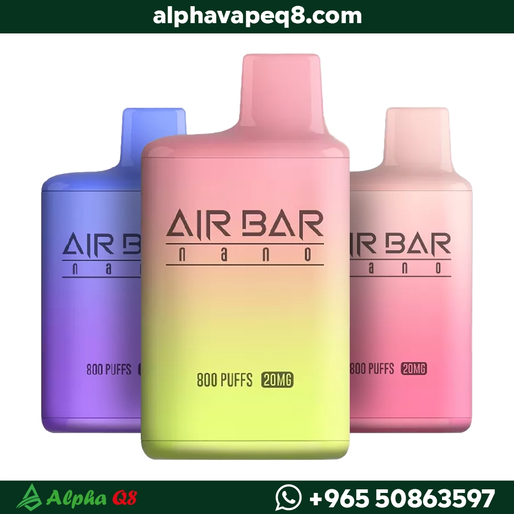 سحبة اير بار نانو 800 سحبة. جهاز خفيف وعملي ببطارية 500mAh وحجم نكهة 3.2 مل. متوفر بنسبة نيكوتين 20mg و 45mg ليعطيك سحبة ناعمة وموزونة.
