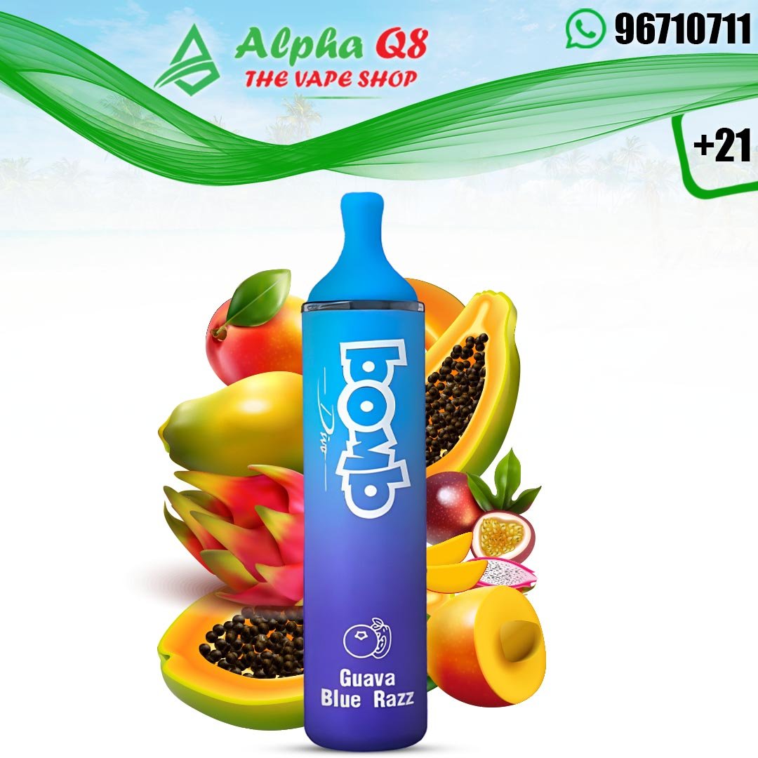 - مع سحبة بومب جوافه بلو راز 4000 سحبه ستختبر توليفة فاخرة تجمع بين الفاكهة والانتعاش بجودة مثالية تليق بذوقك الرفيع.