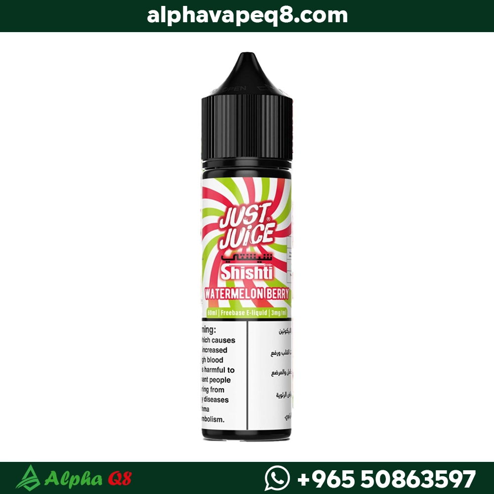 جست جوس شيشتي ووترميلون بيري فري بيز 60 مل مزيج منعش من الرقي مع توت مشكّل بطابع فاكهي متوازن، نكهة صيفية واضحة بطبقات حلوة وخفيفة، متوفرة بتركيزي 0mg و3mg ومناسبة لأجهزة التانك وسحبة DL واسعة.